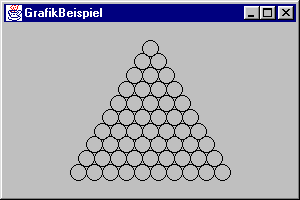 Das Programm gibt dabei eine Pyramide von Kreisen aus. Da die an drawOval übergebenen Parameter bereits das umgebende Rechteck bezeichnen, kann die Figur wie eine Pyramide aus Rechtecken dargestellt werden: