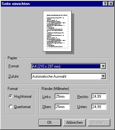 Abbildung 26.2: Der Dialog zur Druckseitenkonfiguration unter Windows