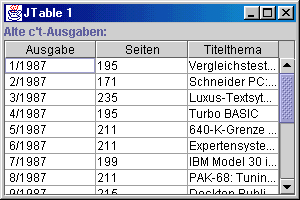 Abbildung 38.7: Eine JTable mit eigenem Spaltenmodell
